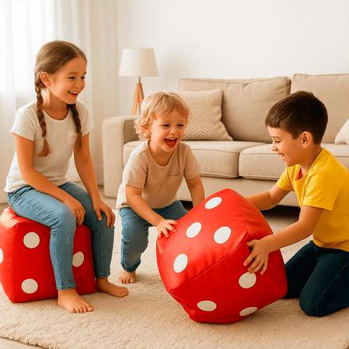 Благодаря наглядному дизайну и знакомому виду игрового кубика, Игра в кости легко интегрируется в учебные и развлекательные занятия, как дома, так и в детских учреждениях. Большой размер и мягкое наполнение позволяют использовать пуф не только как игрушку, но и удобное сиденье, подставку или часть игровой зоны. Дети могут бросать куб, перетаскивать его, придумывать собственные игры – все это способствует физической активности, развитию моторики, воображения и логического мышления.