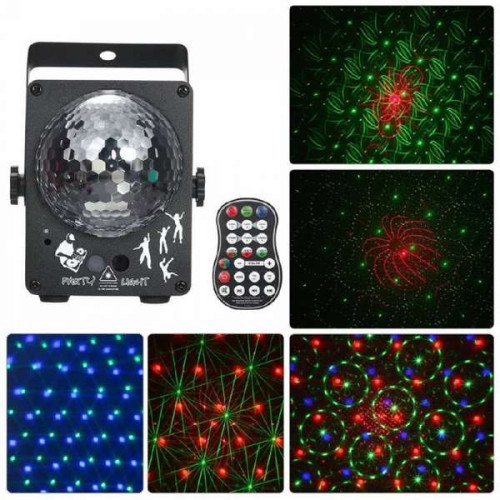 Версия диско-мяча для цвета RGB. 3 комбинации пучков (красный, зеленый, красный с зеленым) с красочным дискотечным шаровым светильником создаст прекрасную атмосферу. Охватываемая пплощадь 269 кв на высоте 3 м.Характеристики: