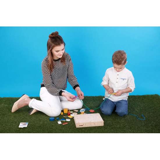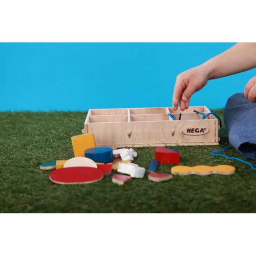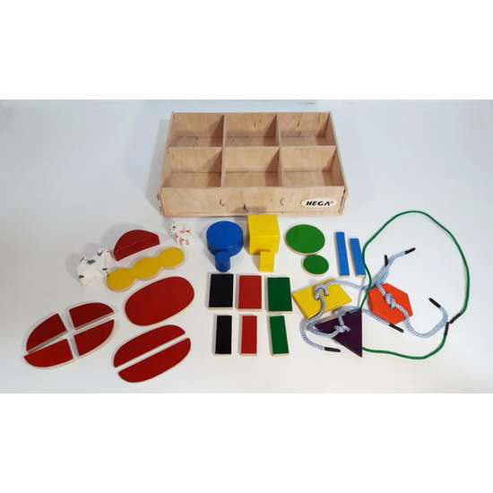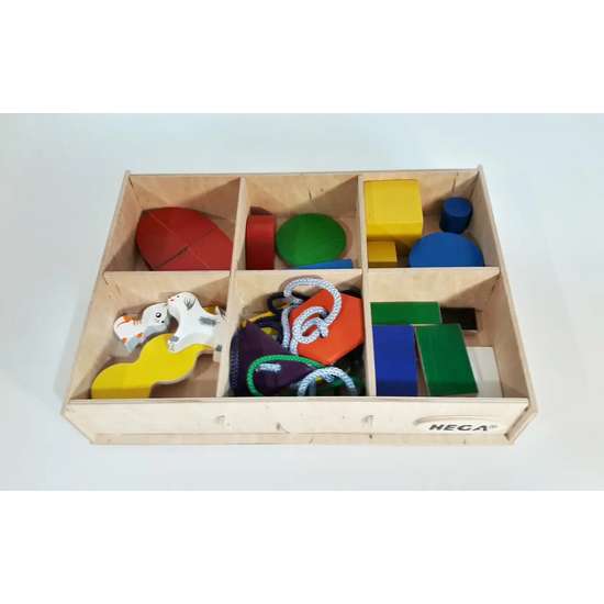 Главная цель набора: знакомства с формами, фигурами, основными цветами, понятиями: больше и меньше, короче и длиннее, получить первые понятия о частях предмета (тема разделения), научиться навыкам шнуровки, научиться обводить предметы, и даже построить качели и покачать друзей!
