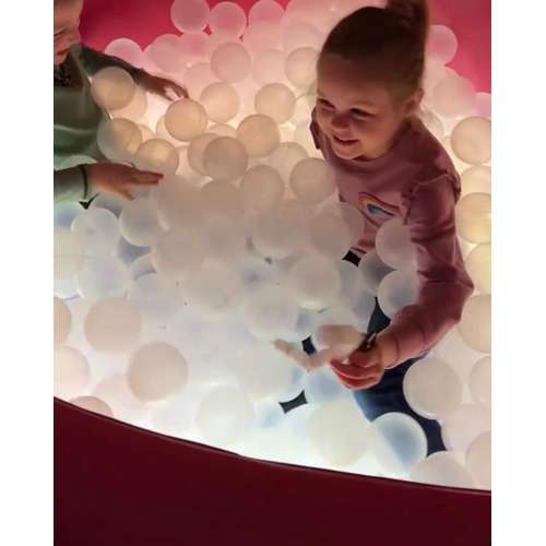Интересные прозрачные шарики для наполнения сухого бассейна. При воздействии светодиодного освещения их поверхность способна отражать несколько цветовых оттенков, которые благоприятно влияют на психоэмоциональное состояние ребенка, и оказывают лечение цвето-терапией.