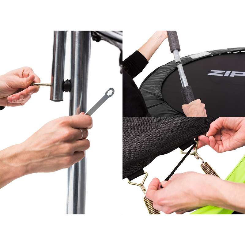 Конструкція батута ЗІПРО проста та надійна. Його розбирання нескладне, як і складання після закінчення стрибкового сезону - з нею легко впорається одна людина. Використання оцинкованої сталі забезпечує стійкість конструкції до корозії, інші елементи, такі як батут, сітка та покриття, стійкі до сонячного світла та вологи.