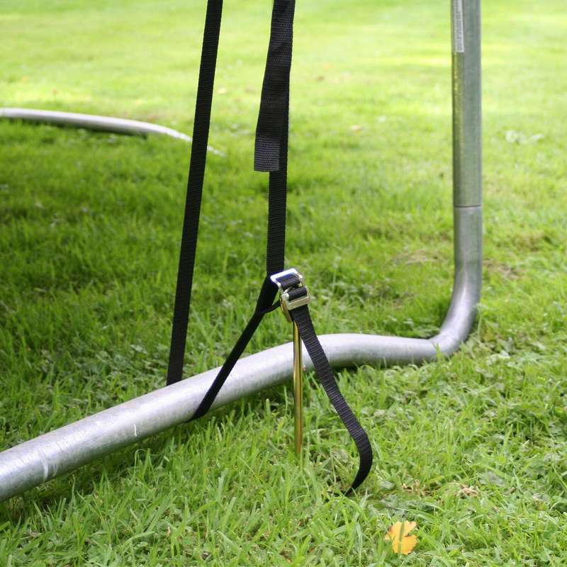 Сильні пориви вітру можуть не тільки зруйнувати батут, але через велику силу він може розірватися на частини і зруйнувати машини та інші предмети, що знаходяться поблизу. Набір для фіксації батута Zipro в землі. Анкер і ремінець, що загвинчується, додатково надійно заземлюють батут і захищають його від пошкоджень, викликаних погодними умовами.