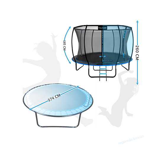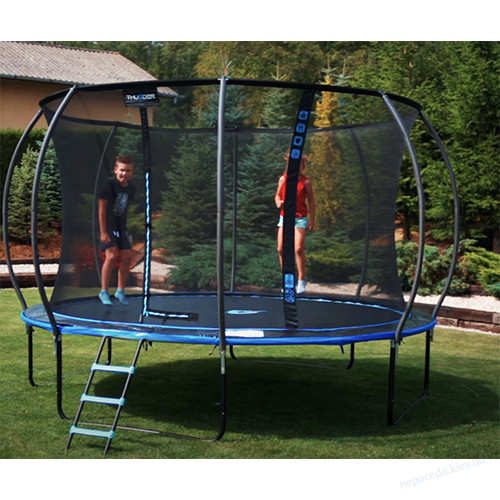 Батут THUNDER INSIDE ULTRA до 150кг з внутрішньою сіткою 374 см чорно-блакитний купити за ціною 13 699 грн.