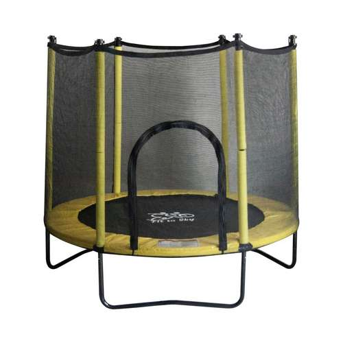 Невеличкий дитячий батут FitToSky 152см Black з сіткою жовтий купити за ціною 3 599 грн.