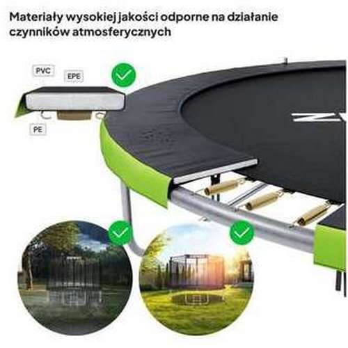 Батут ZIPRO JumpPro OUT - це пристрій з посиленою рамною конструкцією і міцною зовнішньою сіткою. Він розроблений з урахуванням інтенсивного використання, а це означає, що палиці достатньо товсті та міцні, щоб убезпечити вас під час стрибків. Конструкція стовпів була ретельно підібрана, щоб ви могли насолоджуватися грою на батуті, не турбуючись про його довговічність.