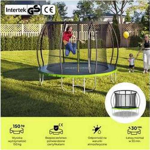 Батут, сітка та покриття стійкі до погодних умов, тому батут можна використовувати навіть у спекотні дні.