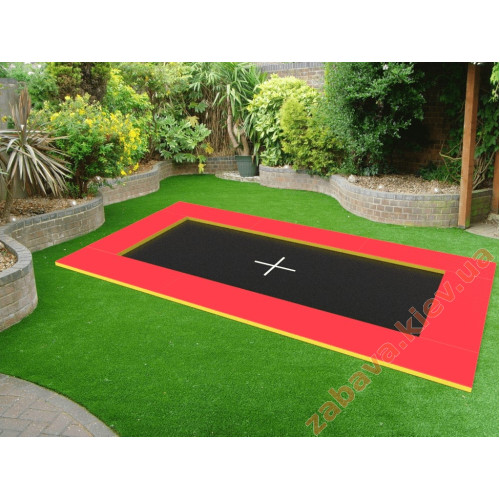 У батутів немає зовнішньої сітки, конструкція стійка і все, що вам потрібно зробити, це розмістити батут у викопаній у ґрунті ямі та вирівняти його.