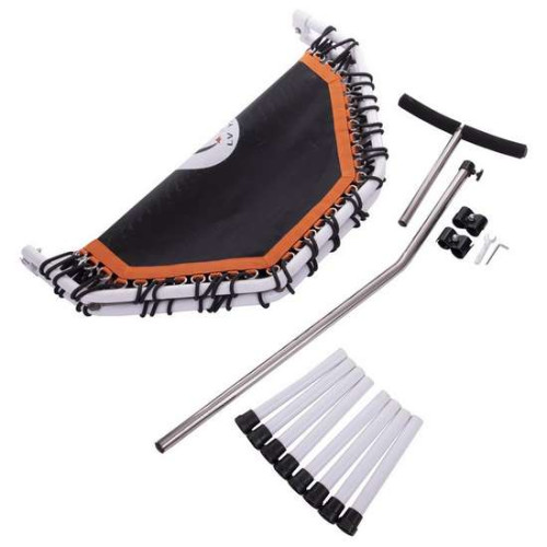 Основою фітнес-батуту є рама, що складається, у вигляді правильного восьмикутника, встановлена на знімні ніжки. Для виготовлення використовується товстостінна металева труба, захищена від корозії полімерним покриттям. Стрибкова поверхня є полотном зі стійкого до розривів синтетичного волокна, з рівномірно розташованими по всьому периметру металевими кільцями. У них заправлена гумова стрічка, яка забезпечує натяг полотна та його амортизацію. Регульована по висоті ручка допомагає спортсмену зберігати стійкість і робить тренування на батуті безпечніше.