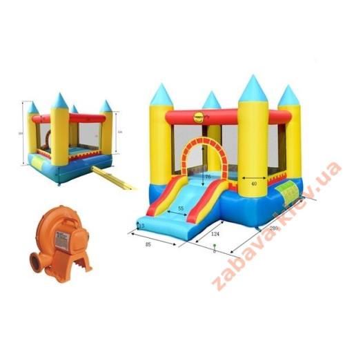 Батут надувний "4 олівці" Happy Hop може розміститися на невеликій площі. Надувний батут – це цілий розважальний комплекс для дітей, у якому поєднані гірки, батут та атракціони.