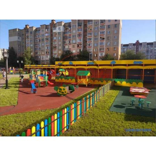 Великий подвійний дитячий тіньовий навіс з лавками в дитячий садок купити за ціною 1 317 384 грн.
