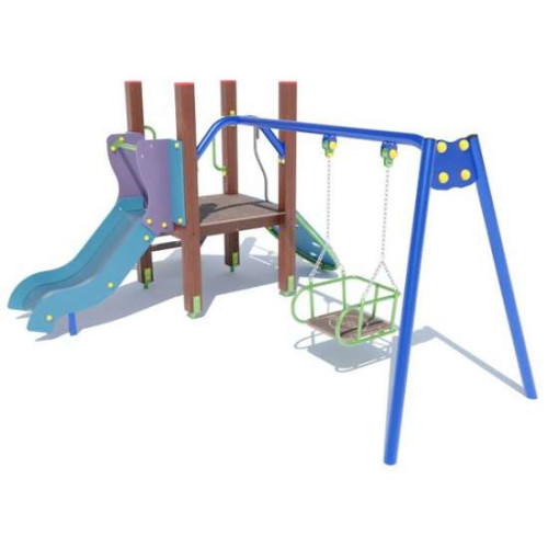 Ігровий комплекс “Павук” користується попитом серед закладів дитячо-навчальних та розважальних, а також зацікавить будь-якого малюка. Комплекс невеличкий, має невисоку гірку та безпечну гойдалочку на ціпах що затверджено нормами безпеки для дитячих майданчиків в Україні, батьки та вихователі відчують, що дитина у безпеці.