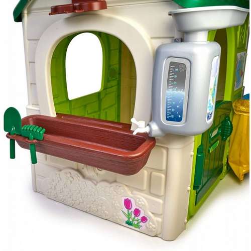 Будиночок Eco Feeder - це ігровий будиночок з усіма розвагами, які потрібні дітям, щоб викликати цікавість на природі. Чудове місце та чудове навчання для дітей! Поставляється з контейнерами для переробки (жовтим і синім), невеликим садом (у горщиках) та інструментами. Це чудовий вид активного відпочинку для дітей. Ви можете грати в посадку насіння та спостерігати за ростом рослин.- Розміри продукту - 128x94x150 см