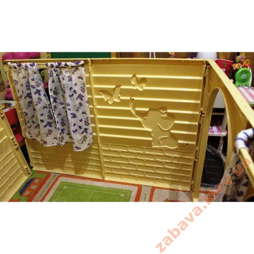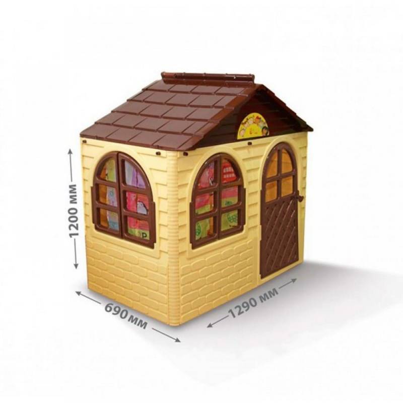 - Дитячий будиночок виконаний із якісного пластику. Його легко мити, він не вигоряє на сонці, добре тримає форму.