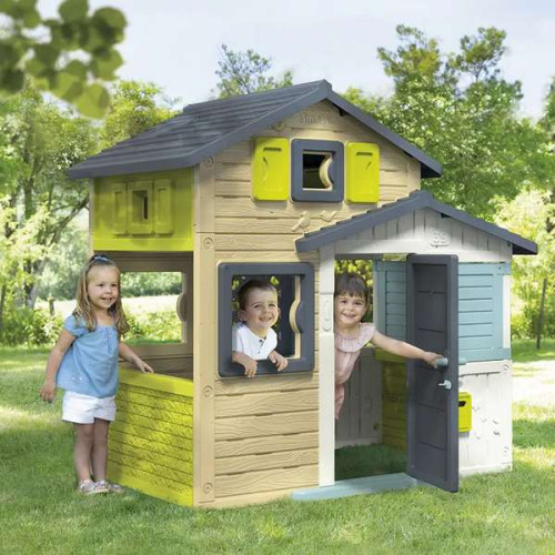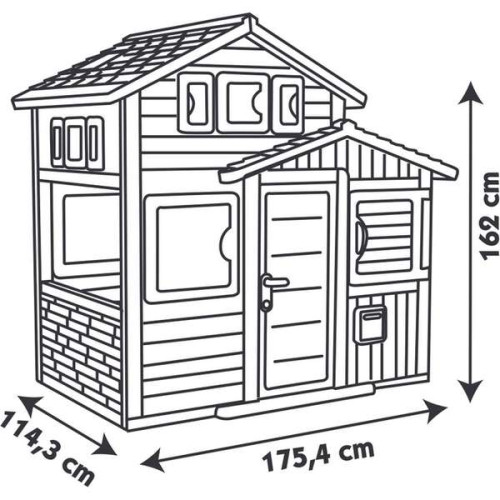 Діти дуже люблять грати в будиночках, вони стають чудовим простором фантазії. Ігровий будиночок Друзі Ево з поштовою скринькою та вікнами (810204) функціональний та просторий, в ньому може розміститися кілька людей для веселої гри.- Розміри – 175х114х162 см