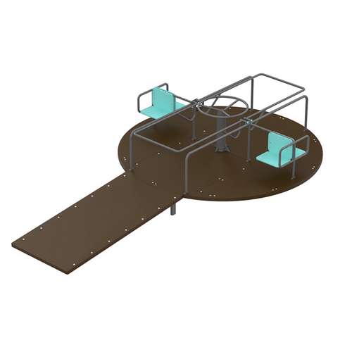 Карусель Простір ОФМ — це інклюзивне дитяче обладнання, створене спеціально для дитячих майданчиків, яке забезпечує комфорт і безпеку для дітей з різними потребами. Завдяки зручному пандусу для заїзду та надійній системі фіксації, ця карусель дозволяє дітям з обмеженою мобільністю активно та весело проводити час у колі друзів.