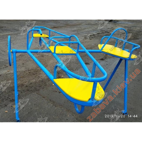 Літак виготовлений із профільної металевої труби різного діаметру. Сидіння виконані із фанери.