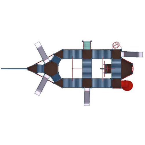 Багатофункціональний дитячий комплекс складається з конструкції у вигляді корабля зі всіма атребутами - штурвалом, ілюмінаторами та каютами. Корабель доповнений 4 металевими гарками та пластиковою спіральною.