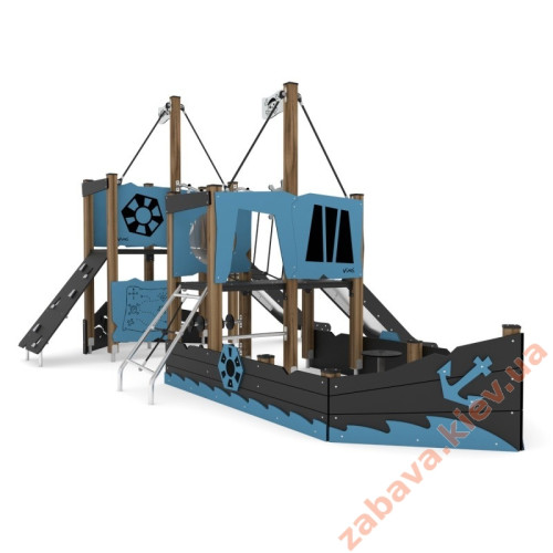 Для цього наш комплекс представлений у вигляді справжнього корябля, на якому навіть є вітрило. Ваші діти зможуть не лише насолодитись яскравими враженнями, але й весело та активно провести час вивчаючи Кораблик.
