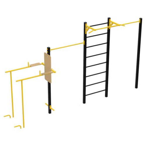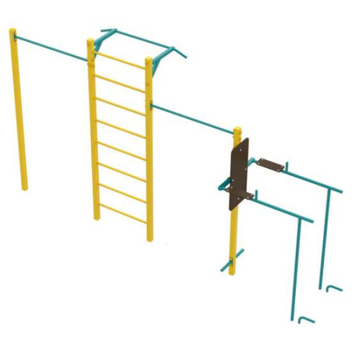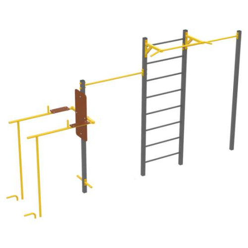 Ексклюзивний спортивний комплекс для занять спортом на свіжому повітрі. Дозволяє вести активний і здоровий спосіб життя. Розроблено та виготовлено згідно з європейськими нормами, розрахований на великі навантаження. Спортивний комплекс універсальний, бо складається з турніків різної висоти, шведської стінки та брусів.Розмір - 4,43х0,9х2,5 м