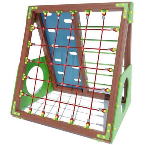 Гімнастичний комплекс “Павучок” DIO692 складається з безлічі шведської стінки, канатної лазалки, лазалки для скелелазіння, гімнастичних кілець та каната.
