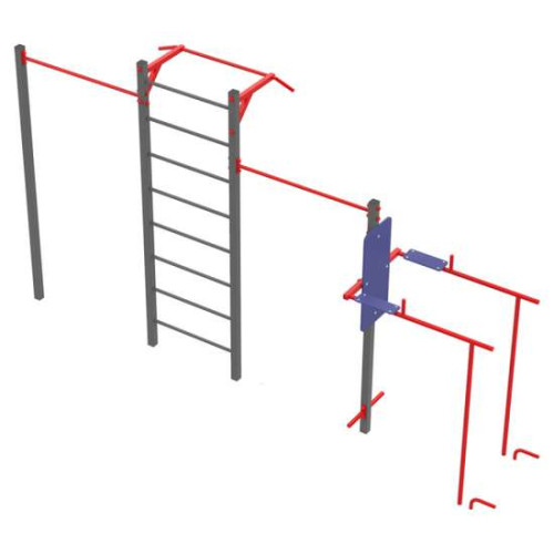 Ексклюзивний спортивний комплекс для занять спортом на свіжому повітрі. Дозволяє вести активний і здоровий спосіб життя. Розроблено та виготовлено згідно з європейськими нормами, розрахований на великі навантаження. Спортивний комплекс універсальний, бо складається з турніків різної висоти, шведської стінки та брусів.Розмір - 4,43х0,9х2,5 м