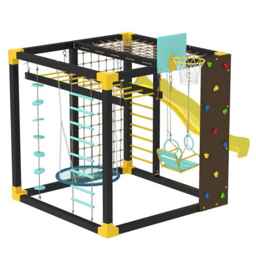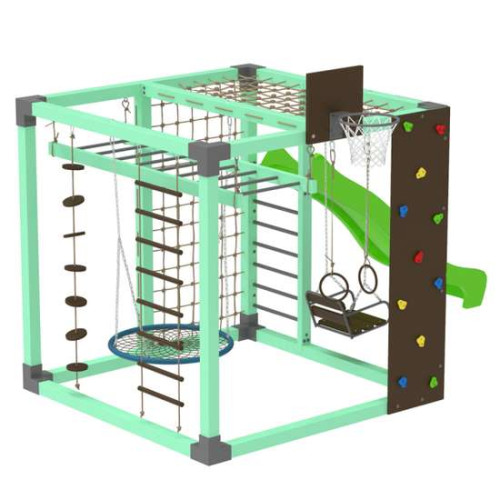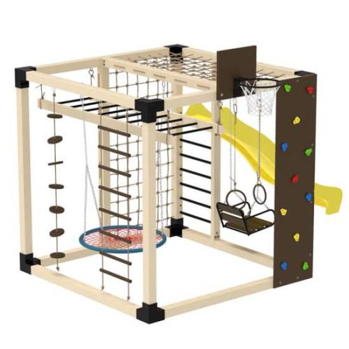 Спортивний комплекс Cube розроблено та виготовлено згідно з європейськими нормами, розрахований на великі навантаження. Дозволяє вести активний і здоровий спосіб життя. У цей комплект включені різні види елементів, що дозволяє тренувати всі групи м'язів. Доповнення комплексу двома різними гойдалками та гіркою дозволяє поєднати тренування з розвагами.