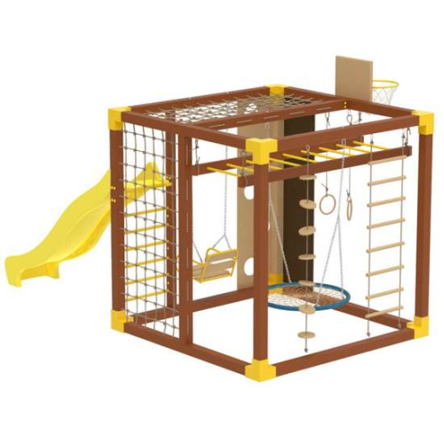 Спортивний комплекс вуличний Cube коричневий гіркою та гойдалкою