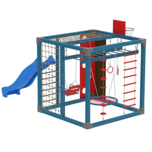 Вуличний спортивний комплекс Cube синій гіркою та гойдалкою