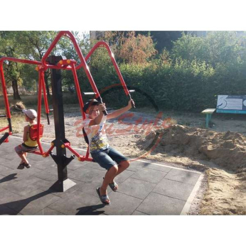 Конструкція цього вуличного тренажера для жиму грудей двостороння. Це дозволить займатися в ньому одночасно двом охочим. Каркас тренажера виготовлений з товстостінних труб. Кольори фарбування можуть бути будь-якими, на прохання клієнта.