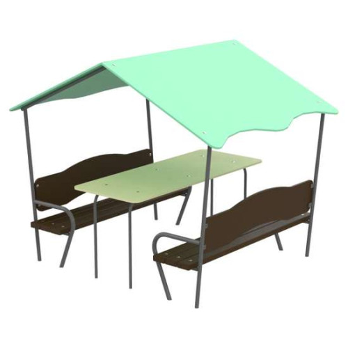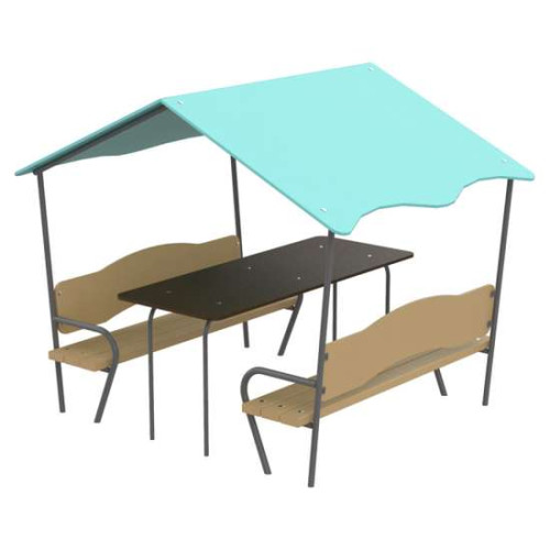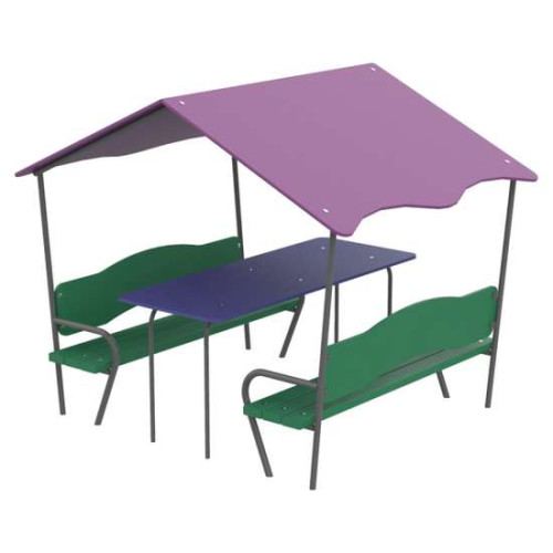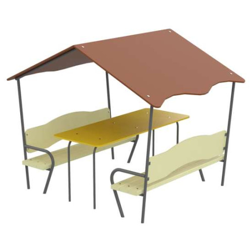 Дитячий будиночок зі столиком - ідеальний варіант для гри Ваших дітей на свіжому повітрі. Дах надійно захистить його від сонця і дощу. Наявність лав та стола забезпечує комфортне використання для ігор та відпочинку.- Розмір - 1,91х1,5х1,58 м