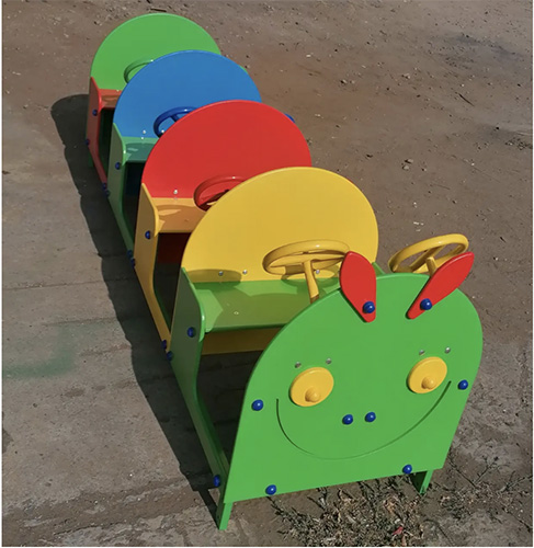 Дитячі ігрові лавочки зі спинкоюі кермом Гусеничка купити за ціною 23 000 грн.