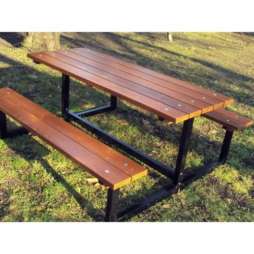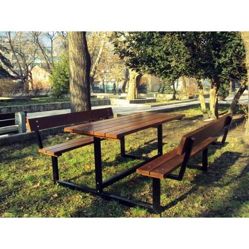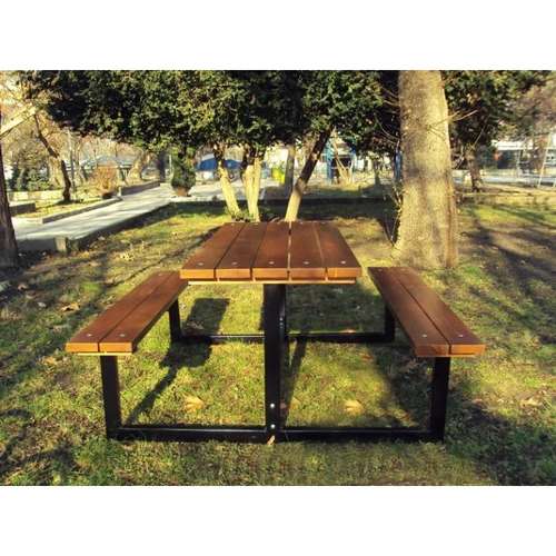 Стіл для пікніка має практичний дизайн, підходить для встановлення у парках, міських центрах та місцях для пікніків. Він відрізняється міцною, сучасною естетикою та чудовою конструкцією. Виготовлений із соснової дошки, яка надійно кріпиться на сталеву раму, він не потребує особливого догляду.