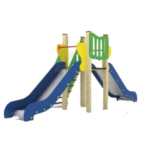 Дитяча гірка подвійна - проста і цікава конструкція, в якій є відразу два спуски, тому хлопцям не доведеться довго чекати своєї черги, щоб прокотитися. Виріб має порівняно невеликі габарити та більше підходить для малюкової аудиторії. Навпроти підйомних сходів є спеціальний обмежувач у вигляді паркану для того, щоб дітлахи піднімаючись сходами не бігли прямо, не розбираючи дороги, а уткнувшись у цю перешкоду, зрозуміла, що для спуску з гірки потрібно розвернутися.