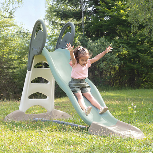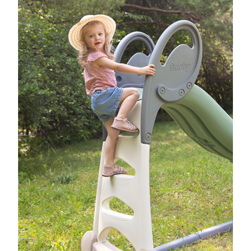 Завдяки широкій основі вона надстійка. У сонячний теплий день ви можете приєднати подачу води та створити водяну розвагу, дитина отримає незабутні враження від такого катання на гірці. Висота гірки 142 см. Загальна довжина гірки 230 см.Мало яка гірка може бути такою безпечною і водночас стильною та зручною.