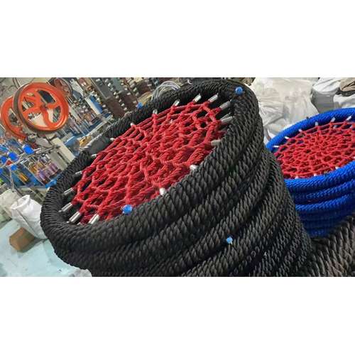 Сітка ткана сильними поліпропіленовими канатами діаметром 16 мм, 3-4 кручена коса ― кручена мотузка поліпропілену (16 мм Тип multifilnament) з високою міцністю та стійкістю до УФ-світла.