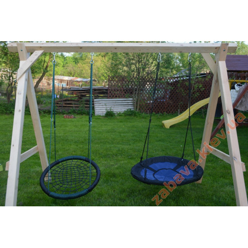 Унікальна гойдалка-гніздо "Oval" свита з мотузок і зовнішнім виглядом нагадує дорогі комерційні гнізда, що встановлюються у міських парках та дворах. Для пом'якшення можливих ударів рама обмотана м'якою мотузкою РР та з двох поздовжніх сторін додатково пом'якшена м'якою пінкою. Цей високоякісний продукт поставляється в комплекті з кільцями та вісімками з оцинкованої сталі, а мотузки-підвіси із чорними пластиковими уелдами.
