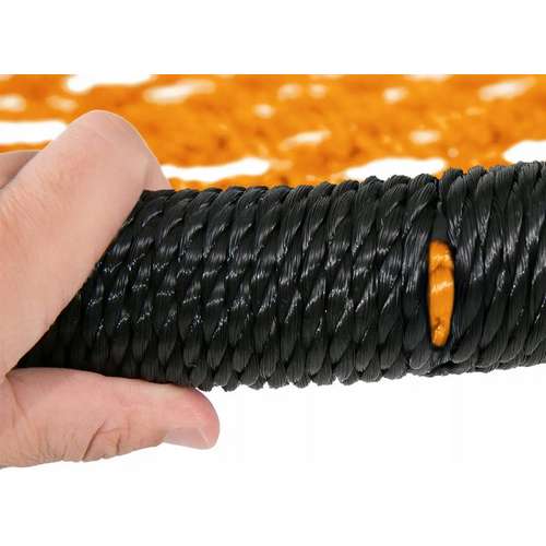 - Щільна мотузкова сітка не тільки підвищує безпеку, але й дає багато можливостей для розваг, а відсутність виступаючих вузлів підвищує комфорт, усуваючи ризик потертостей.
