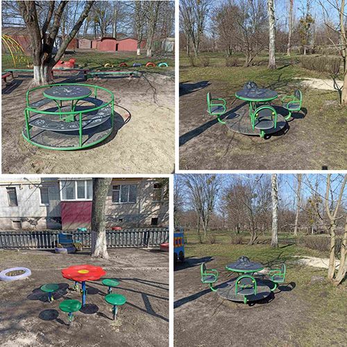 Наш завод завжди дбає про безпеку маленьких користувачів, тому всі матеріали лише з високоякісних матеріалів, металевих та дерев'яних компонентів. Карусель покрита високоякісною емаллю найкращих європейських виробників. Металеві елементи покриті порошковими фарбами стійкими до погодних умов.