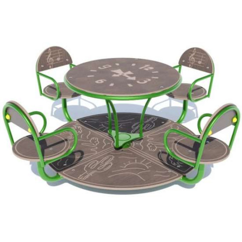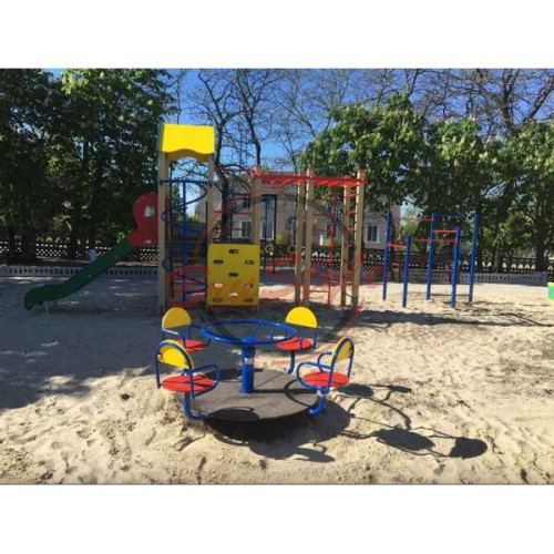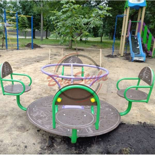 У комплекті каруселі є 4 сидіння зі спинками. Тобто одночасно кататись на каруселі можуть четверо дітей. Сидіння та спинки зроблені з вологостійкої фанери, яка служитиме Вам довгі роки.