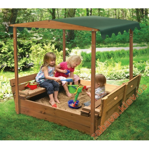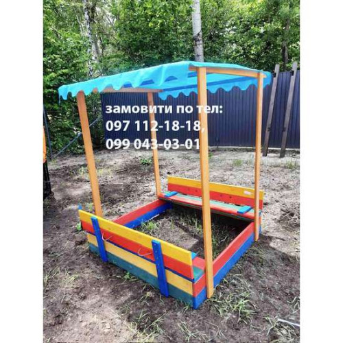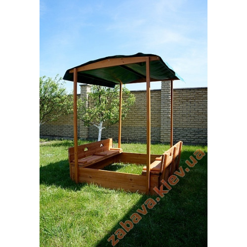 Пісочниця з дахом та лавками. Чудово захищає від сонця.