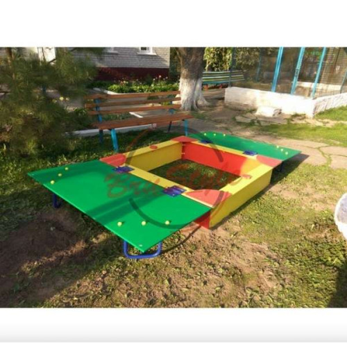Це чудовий варіант як для приватних будинків, так і для дитячих майданчиків. Пісочниця з кришкою має два відділення, що дозволяє одночасно користуватися пісочницею великою кількістю дітей. Пісочниця має металеву кришку, яка за потреби відкриває/накриває пісок. Завдяки кришці пісок завжди зберігається чистим і не намокає.