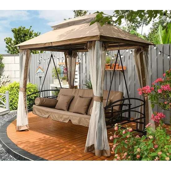 Розкладна садова гойдалка + павільйон з москітною сіткою PANAMA бежева на дачу купити за ціною 17 399 грн.