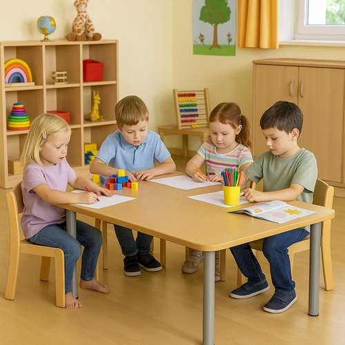 Функціональний та безпечний дитячий стіл із сучасним дизайном стане універсальним рішенням для навчання, ігор та творчості. Завдяки продуманій конструкції він забезпечує комфортний простір для дітей, відповідає їхнім фізіологічним потребам та легко адаптується до щоденного використання у дитячих садках, школах та центрах розвитку. Стіл виготовлений із якісних матеріалів, стійких до навантажень, безпечних для дітей та простих у догляді.Розміри: