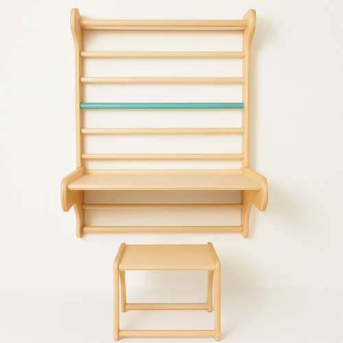 Створіть затишне та функціональне місце для своєї дитини з компактним столиком і стільчиком, що ідеально поєднуються з Піклер-трикутником або ламелями. Стіл легко розкладається та кріпиться до конструкції, економлячи простір у кімнаті. Завдяки стійкій конструкції діти зможуть малювати, писати, творити чи навіть влаштовувати власні маленькі свята. Натуральне покриття з березової фанери забезпечує довговічність, безпеку та приємний вигляд, а також відповідає стандартам екологічності. Стілець входить у комплект та зручно зберігається поруч, не займаючи багато місця.Розміри: