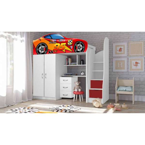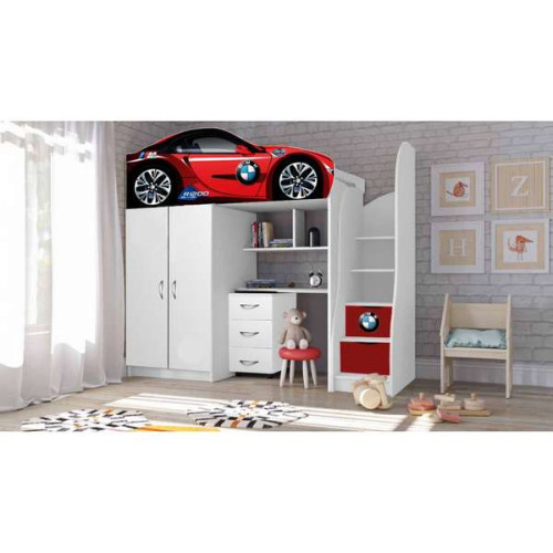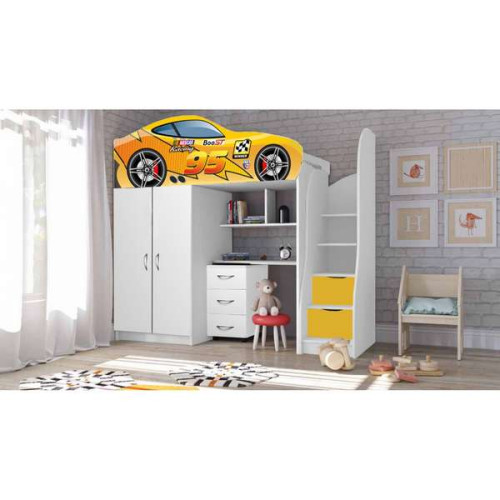 Дитяче ліжко-кімната з серій ELIT, відмінне поєднання яскравих кольорів і дизайну. Ліжко-автомобіль - це заповітна мрія для маленького пілота ралі, може бути виконане в білому, синьому та інших кольорах.