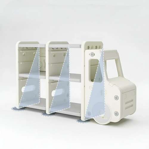 • Відкритий по обидва боки кузов, дозволяє розмістити шафу-автомобіль у будь-якому місці кімнати. Таким чином, забезпечивши вільний доступ до його вмісту з будь-якої сторони.