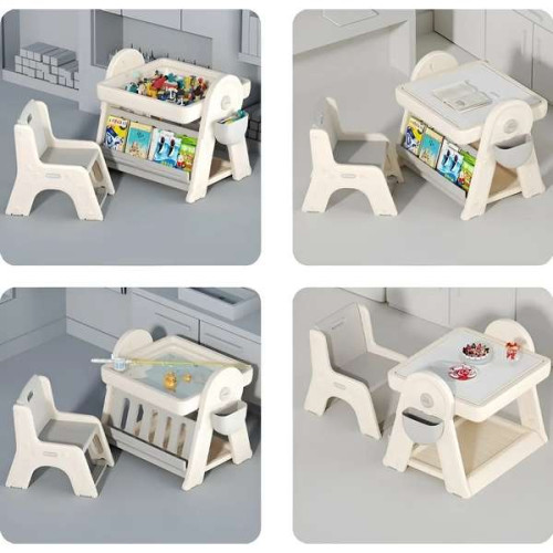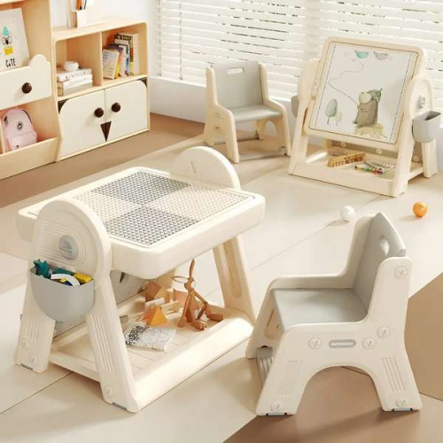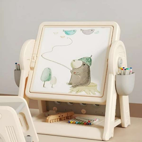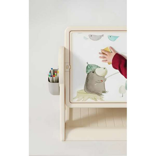 Саме завдяки їй такий стіл стане ідеальним рішенням для всіх сімей, де є маленькі діти. А особливо для тих, де житлова площа не дозволяє мати громіздкі предмети меблів. Тим більше, з огляду на те, що такий столик трансформується, і у складеному стані займає мінімум місця. Також, столик передбачає наявність бічного пеналу, в якому можна розташовувати маркери, або інші предмети для дитячої творчості.
