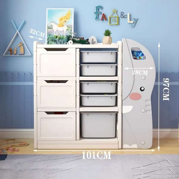 Стелаж з контейнерами «Elefun» – незамінний предмет меблів у кожній дитячій кімнаті.