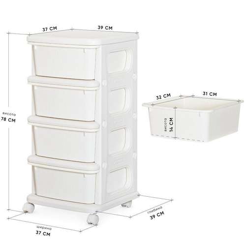 Стелаж для іграшок та книжок Otto білий на 4 контейнера і на колесах