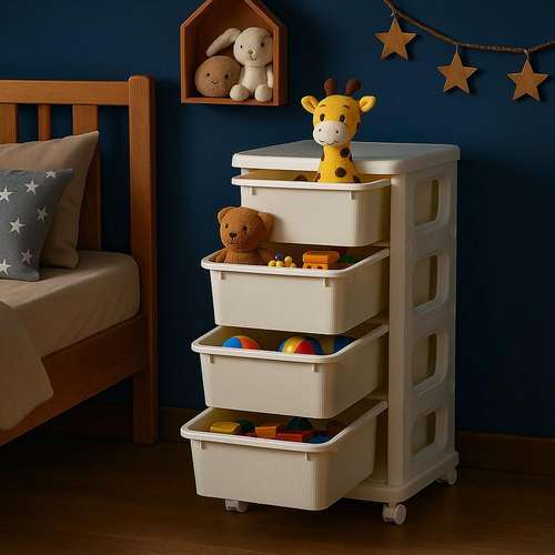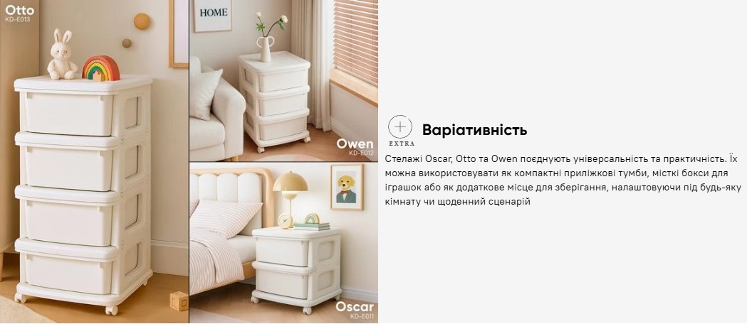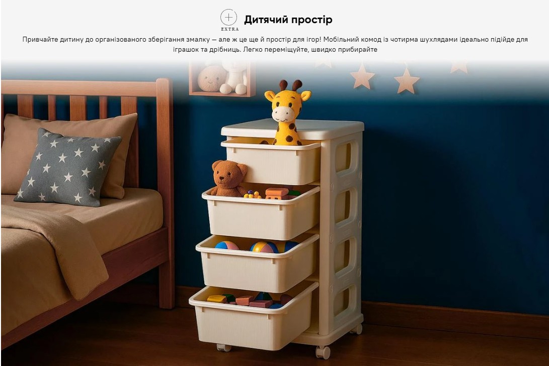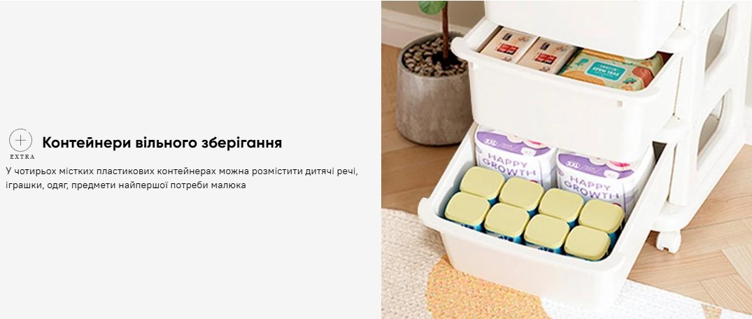 Стелаж для іграшок та книжок Otto білий на 4 контейнера і на колесах купити за ціною 3 190 грн.